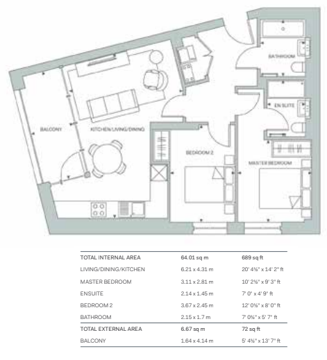 • Property Size: 689 SQFT