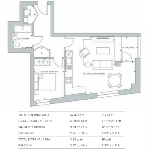 • Property Size: 617 SQFT
