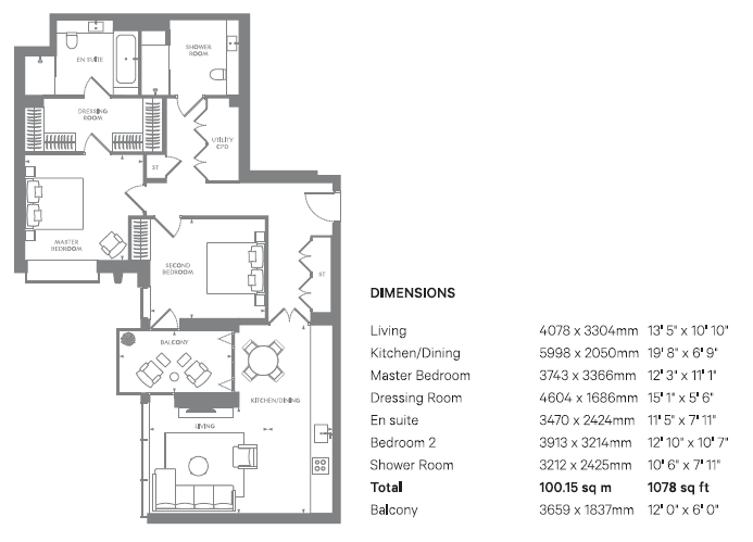 Private residents’ facilities comprise 24-hr concierge, 20m swimming pool and spa, fitness suite, lounge, cinema room and business suite.