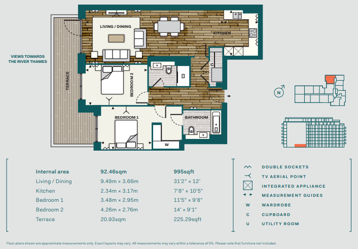 • Property Size: 995 SQFT