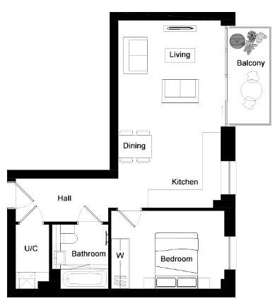 • 1 Bedrooms Apartment